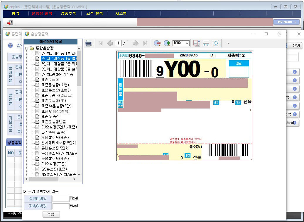 건별 접수를 하면 송장 스티커를 인쇄할 준비가 된 것.