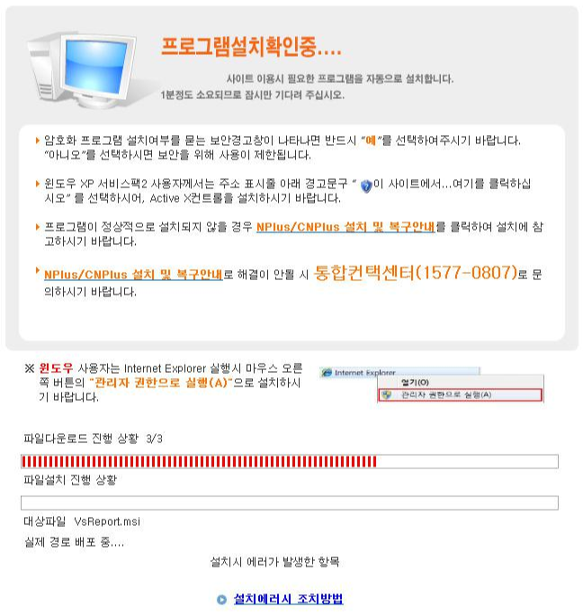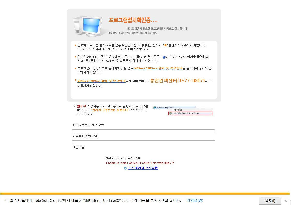 익스플로러로 위 링크를 접속하면 설치를 시작할 수 있다.
