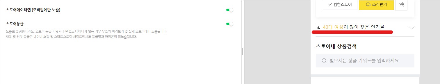 그 아래의 스토어 데이터랩 (모바일에만 노출)